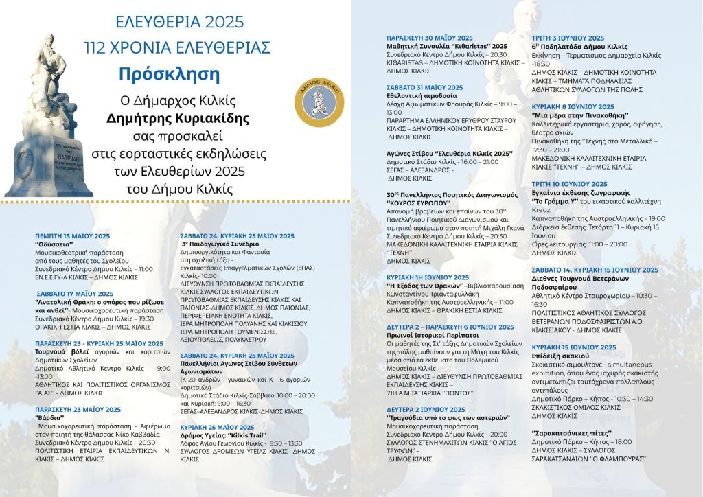 Το πρόγραμμα των ‘’Ελευθερίων’’ του Δήμου Κιλκίς, αναλυτικά: